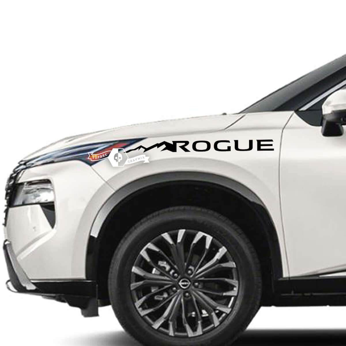 Améliorez votre Nissan Rogue avec notre autocollant vinyle latéral pour capot motif montagnes, conçu pour donner un look robuste et aventurier à votre véhicule.