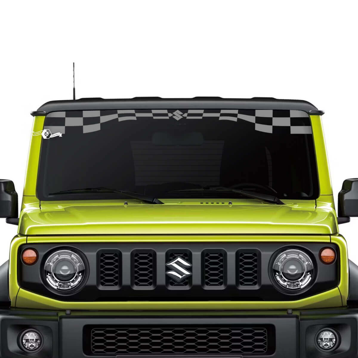 Améliorez votre Suzuki JIMNY avec notre autocollant décalcomanie drapeau à damier premium pour pare-brise. Conçu pour les passionnés de voitures souhaitant afficher un look dynamique d'inspiration course, ce décalcomanie en vinyle est durable et résistant aux intempéries.