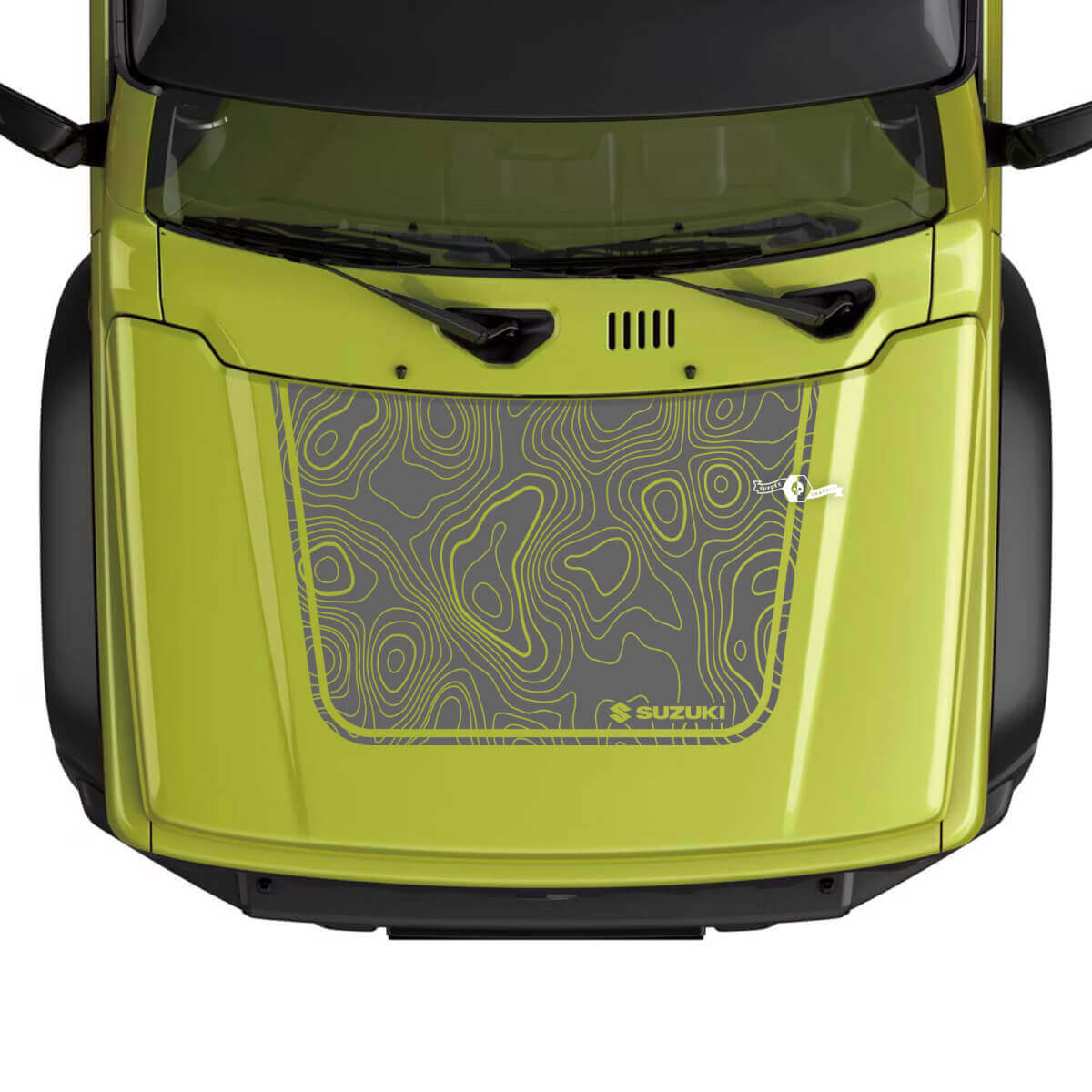 Transformez votre Suzuki JIMNY avec notre décalcomanie topographique stylée pour capot. Conçue en vinyle de haute qualité, cette décalcomanie ajoute une touche unique d’inspiration aventure à votre capot, faisant ressortir votre JIMNY sur route comme hors route.