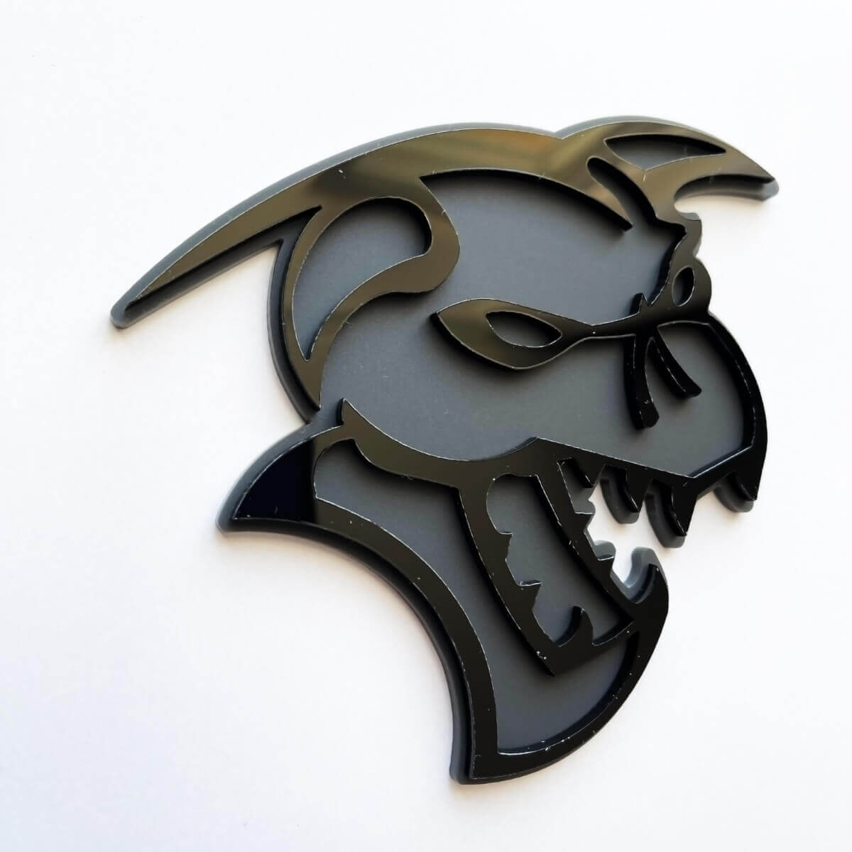Améliorez le style de votre véhicule avec le badge Demoncat Demon 3D en finition noire et grise saisissante. Cet emblème de garde-boue premium ajoute une touche audacieuse et dynamique à toute voiture, améliorant son apparence avec un design élégant et moderne.