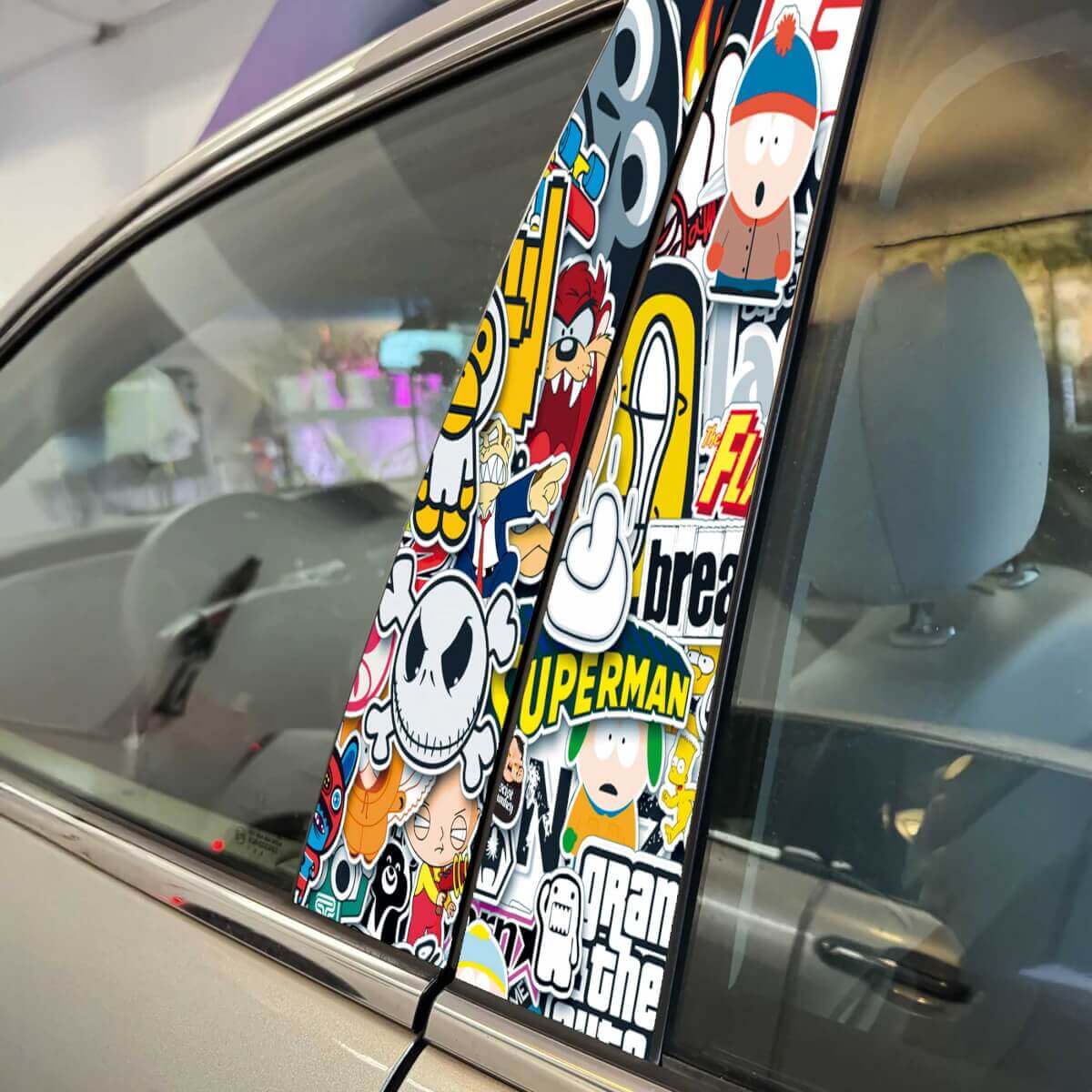 Pack d'autocollants pilier portes voiture décalcomanie vinyle autocollant Wrap