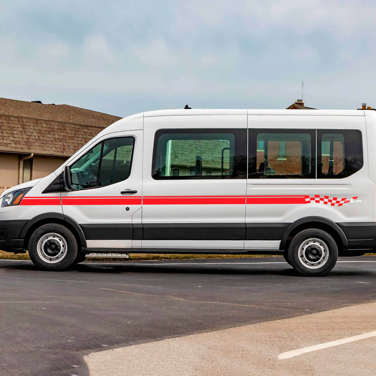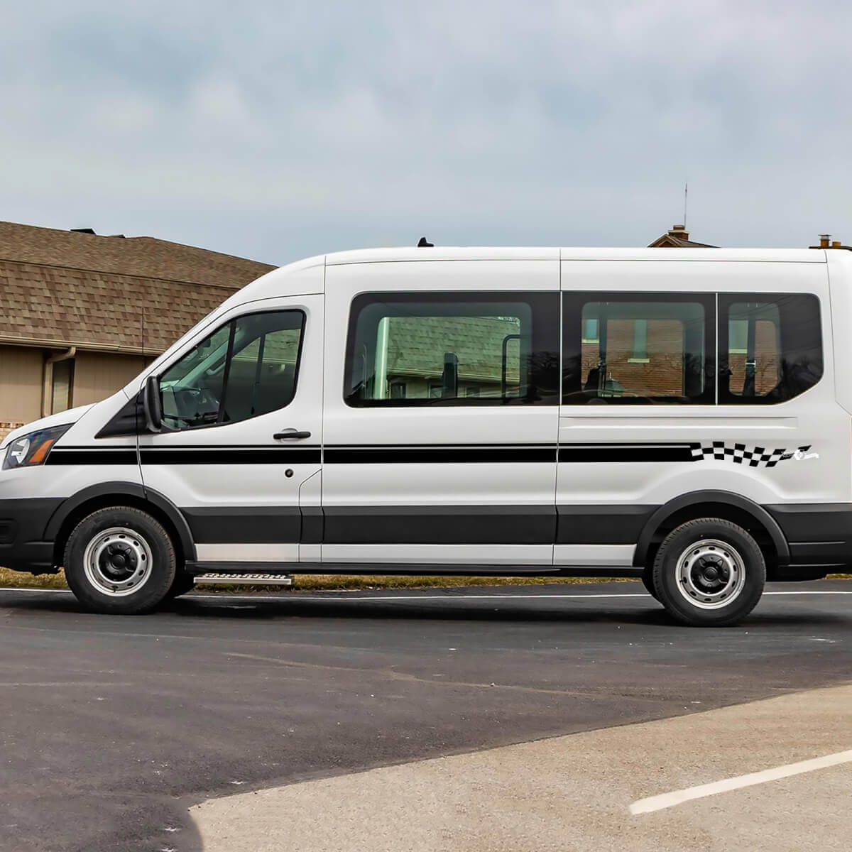 Bandes latérales à damier en vinyle pour Ford Transit - Autocollants Décalcomanies