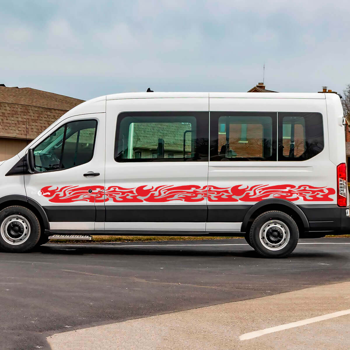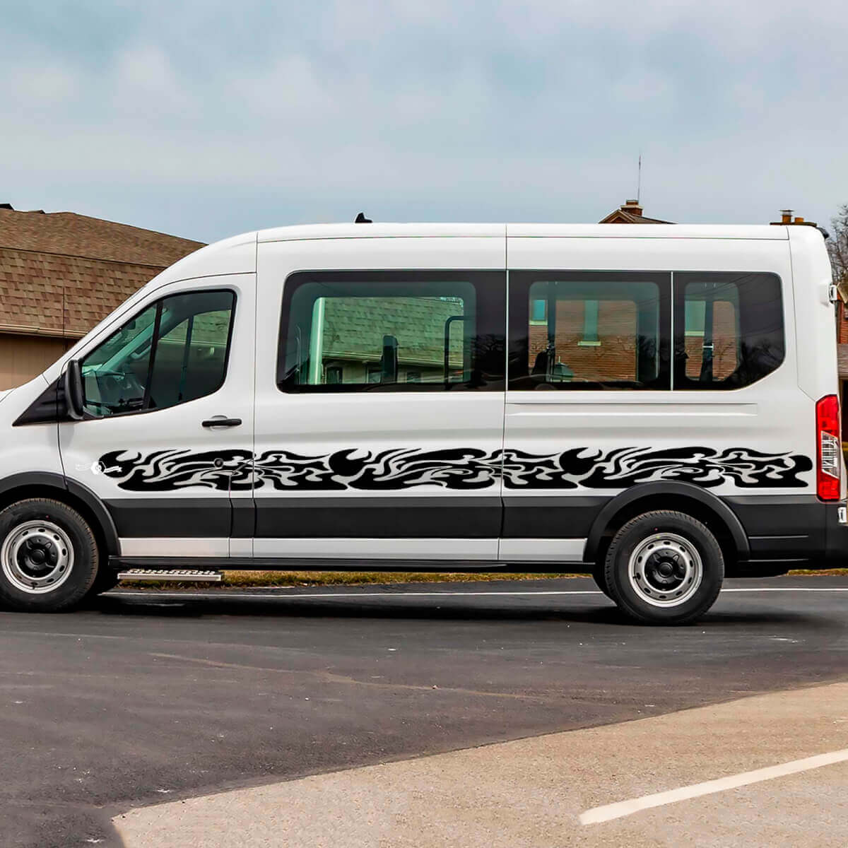 Améliorez votre Ford Transit avec nos autocollants vinyle bandes latérales de haute qualité. Conçus spécialement pour les modèles Ford Transit, ces graphismes offrent un look élégant et professionnel qui valorise le style de votre véhicule.