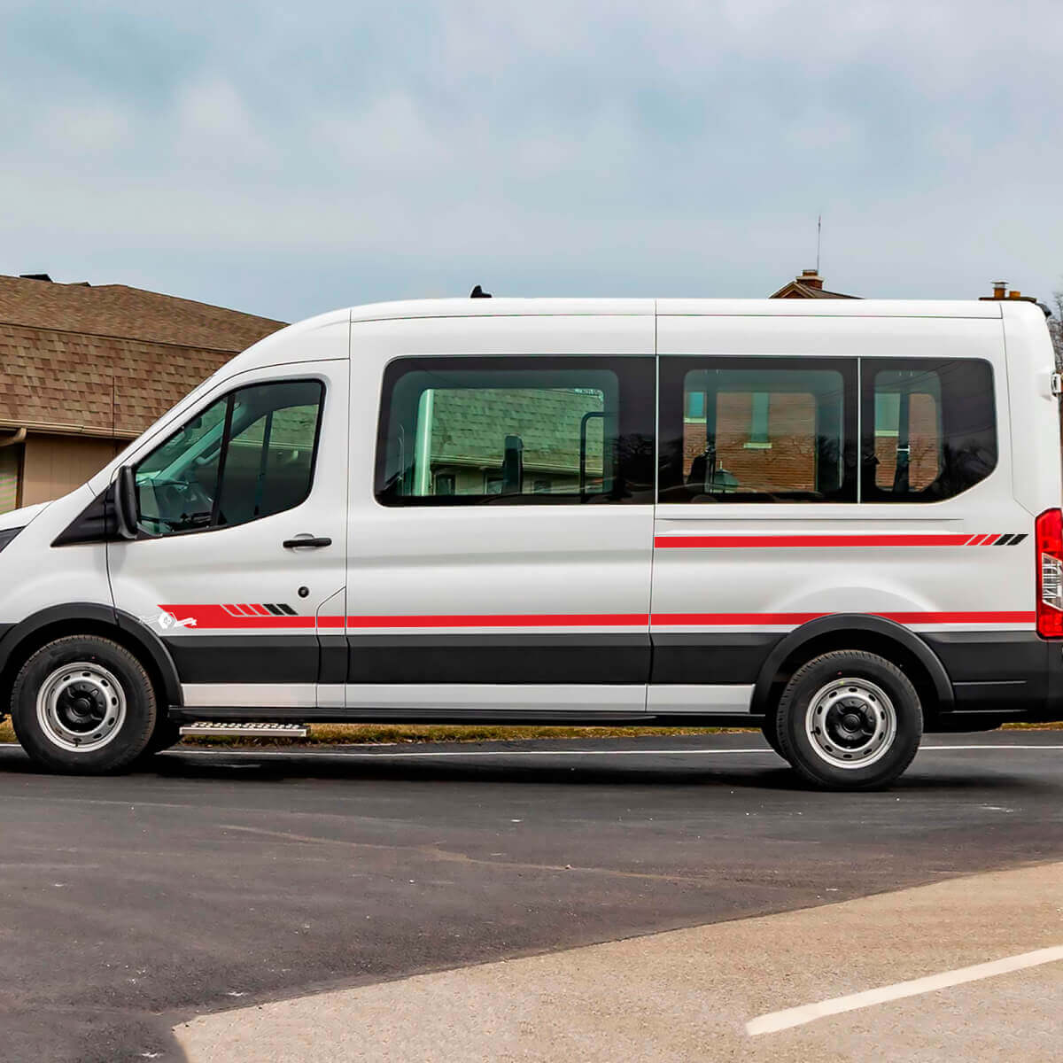 Améliorez votre Ford Transit avec nos décalcomanies bandes latérales Racing Graphics en vinyle. Conçues pour la durabilité et le style, ces décalcomanies apportent un look élégant et sportif à votre véhicule.