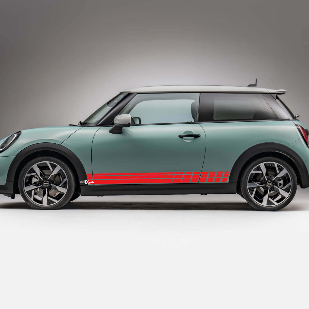 Améliorez votre Mini Cooper S avec notre autocollant graphique bandes de course latérales. Conçues pour donner à votre voiture une apparence sportive et dynamique, ces bandes en vinyle sont faciles à appliquer et durables.