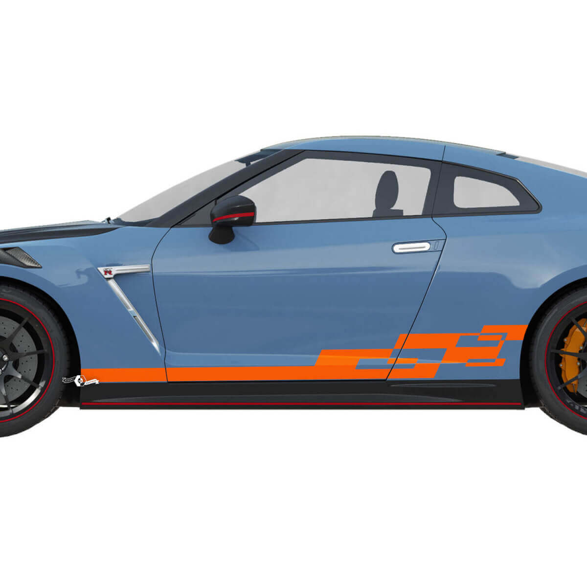Améliorez l'esthétique de votre Nissan GT-R avec le kit de décalcomanies à rayures graphiques à damier latérales