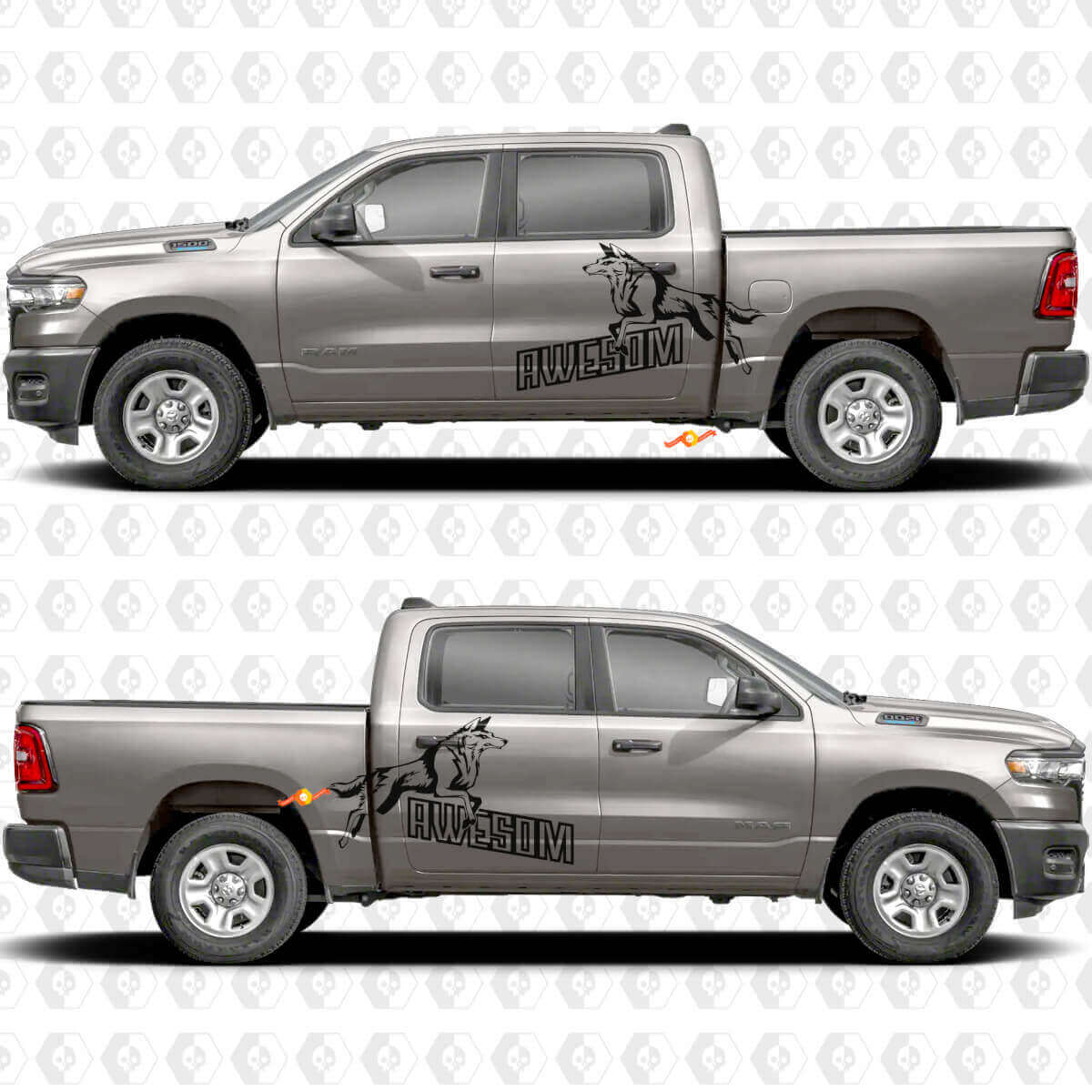 Améliorez l’apparence de votre véhicule avec nos Décalcomanies Vinyle Awesome Wolf pour Portes Latérales et Bas de Caisse. Ces autocollants de voiture de haute qualité sont conçus pour s’adapter parfaitement aux portes latérales et aux bas de caisse, ajoutant un graphisme splash de loup audacieux et frappant qui se démarque.