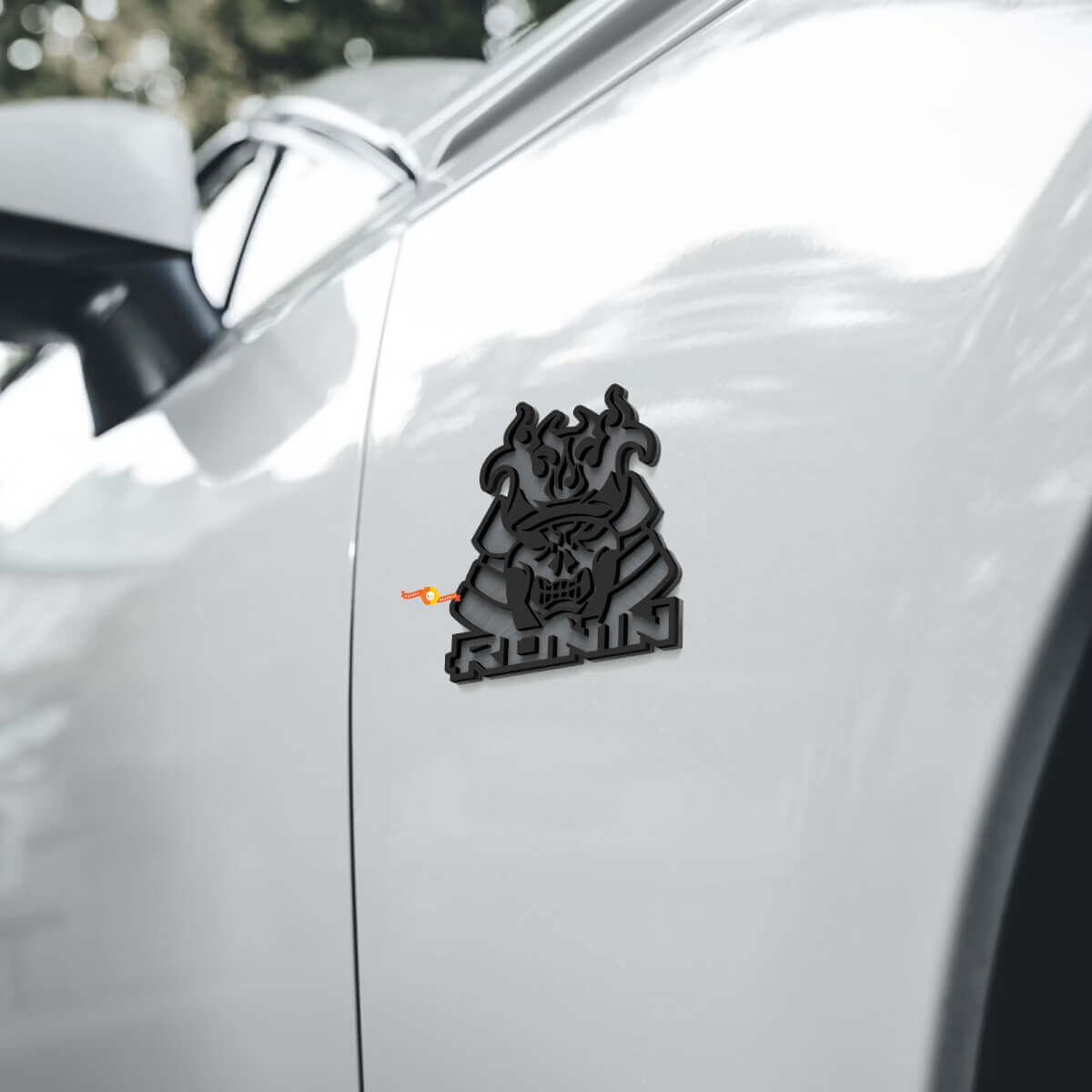 Améliorez le style de votre véhicule avec notre badge d'aile Skull Samurai Ronin Fender Badges Tailgate Emblem 3D. Cet emblème 3D saisissant combine des éléments de design audacieux, présentant un samouraï crâne féroce fusionné avec un motif ronin terminator, parfait pour ceux qui souhaitent faire une déclaration puissante sur leur voiture ou leur camion.