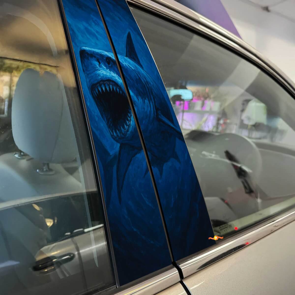 Transformez votre véhicule avec le Sticker Autocollant en Vinyle Style Grand Requin Blanc pour Portes Pilier, audacieux et accrocheur. Conçu pour ajouter une touche marine et percutante aux piliers de votre voiture, ce vinyle fait une déclaration saisissante, parfaite pour les passionnés de requins et les amateurs de voitures créatifs.