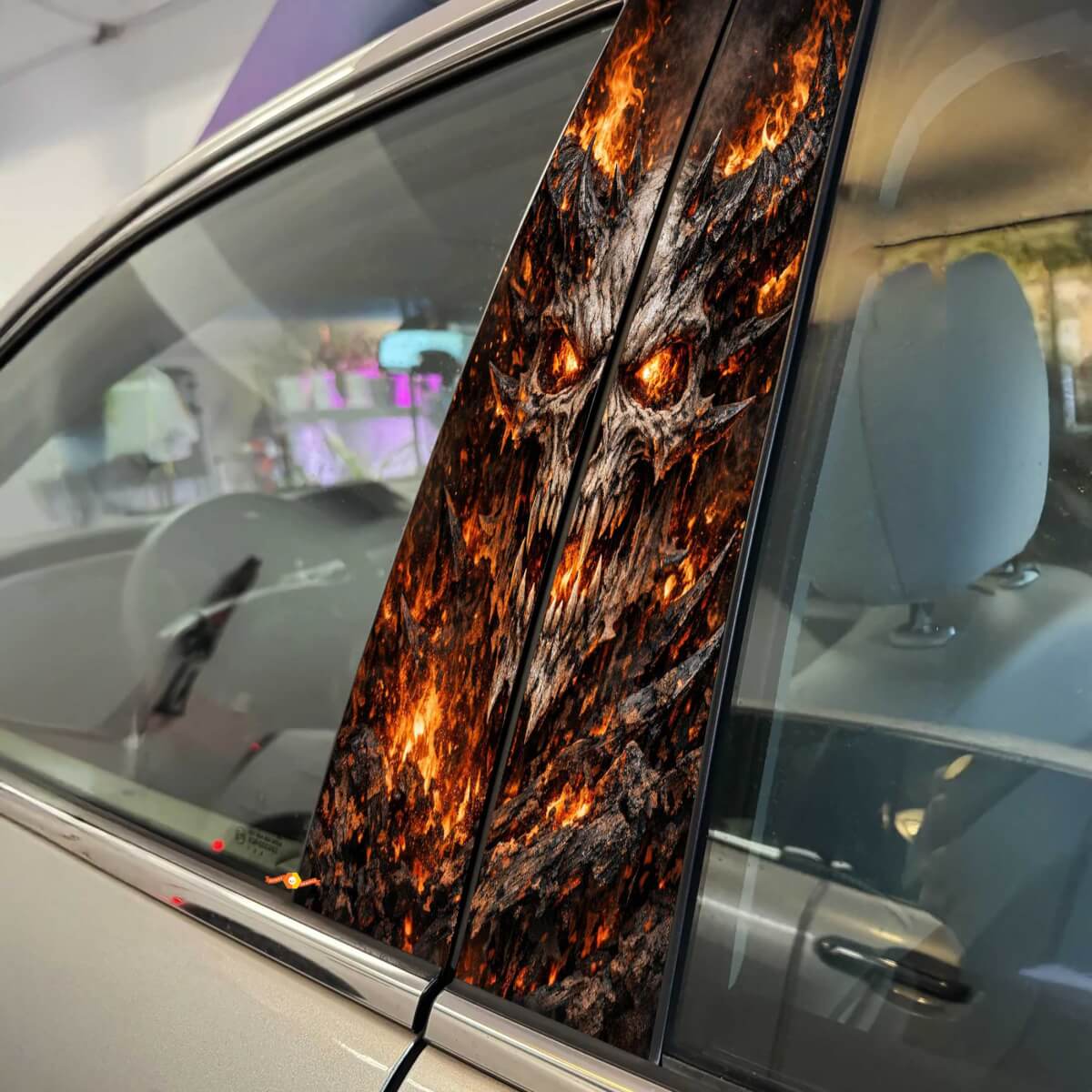 Transformez votre véhicule avec notre autocollant vinyle Burning Demon Skull pour portes à montants, conçu pour donner un look audacieux et féroce à votre voiture. Fabriqué en vinyle de haute qualité, cet autocollant est parfait pour améliorer l'apparence des portes à montants de votre voiture, offrant à votre véhicule un style unique et agressif qui se démarque sur la route.