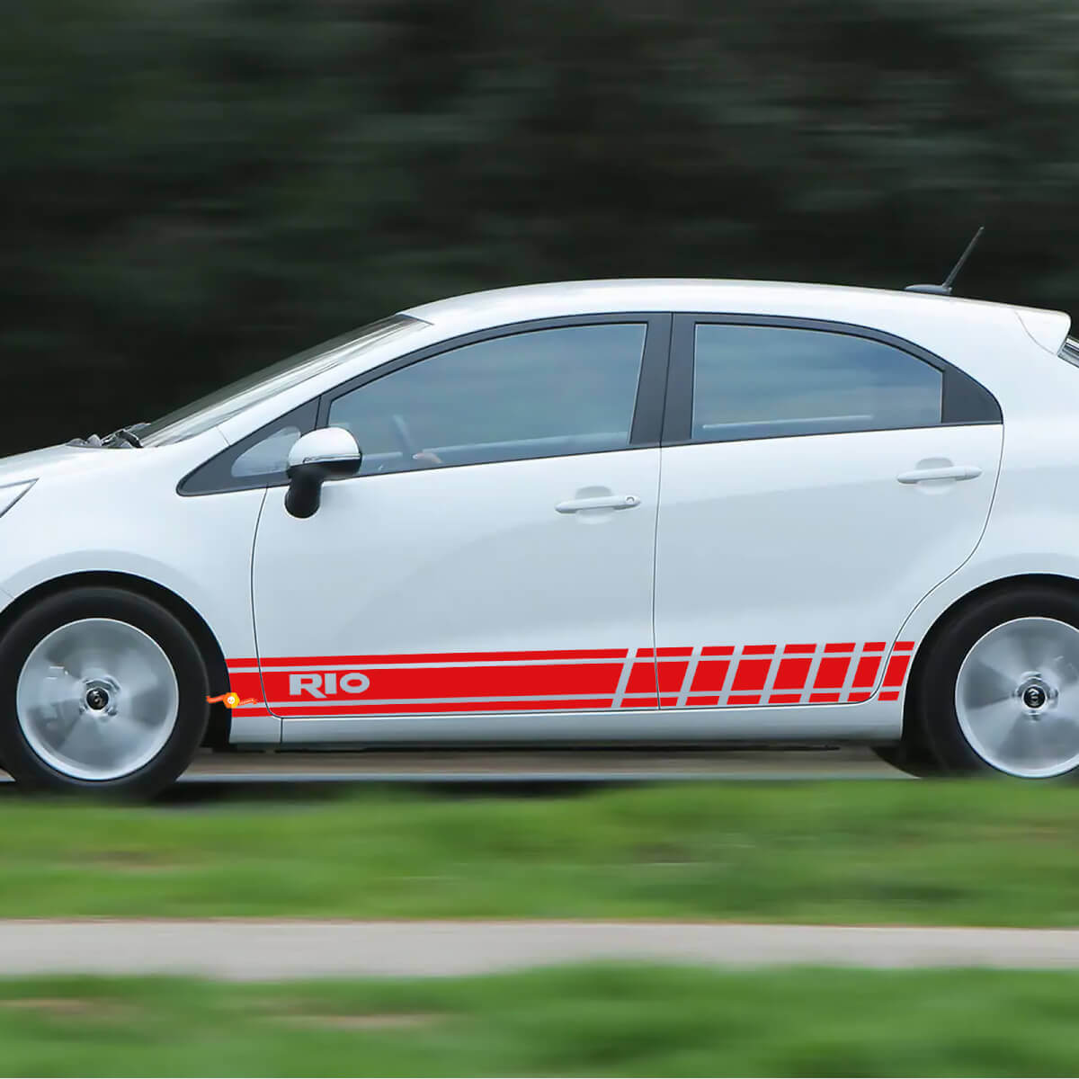 Améliorez l'apparence de votre Kia Rio avec notre autocollant vinyle bandeaux de course latéraux. Conçus pour un ajustement parfait, ces autocollants ajoutent une touche sportive à votre véhicule, le faisant ressortir sur la route.