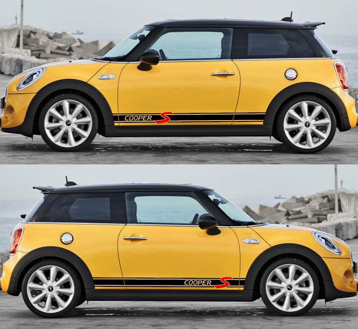 Améliorez votre Mini Cooper S (2014-2018) avec nos exclusifs autocollants 2X bandes latérales. Ces stickers vinyles sont conçus pour s'adapter parfaitement aux panneaux latéraux de votre véhicule, ajoutant un look sportif et élégant.