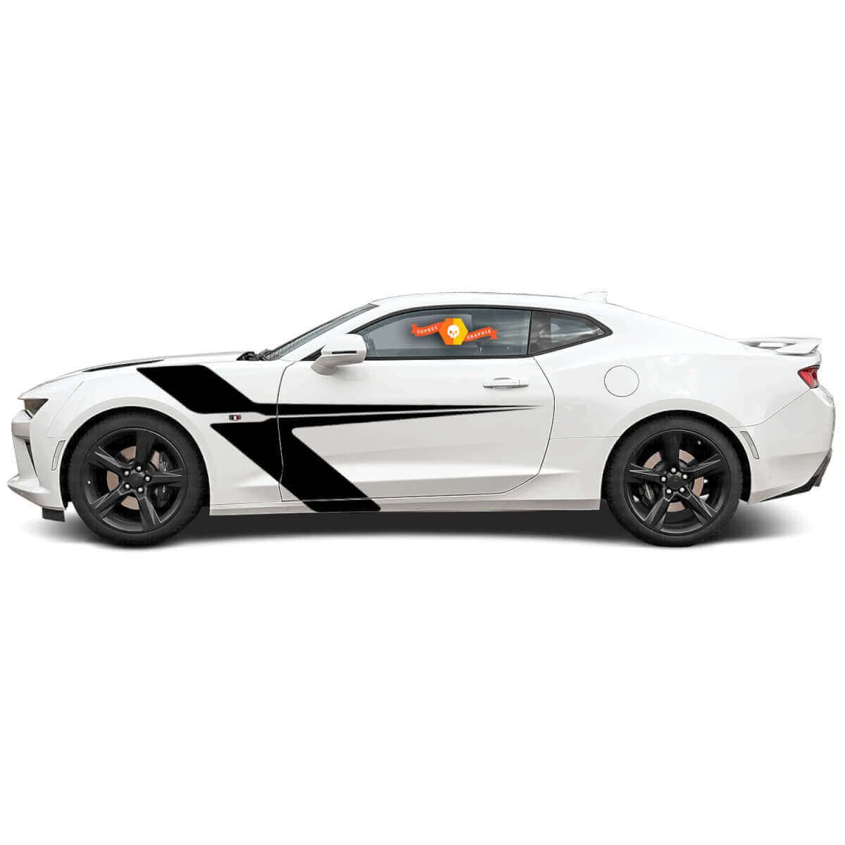 Si vous aimez la vitesse et souhaitez donner à votre Chevrolet Camaro un look unique et audacieux, alors cet autocollant est le choix parfait. Un autocollant vinyle décoratif, constitué d'une bande de course à pointe aiguë, est monté sur l'aile avant et couvre la majeure partie de la porte, créant une image dynamique et expressive de la voiture. Vous pouvez choisir n'importe quelle couleur et type de film — mat ou brillant, ainsi qu’ajouter des logos supplémentaires pour compléter le style. Écrivez-nous simplement pour discuter de la personnalisation.