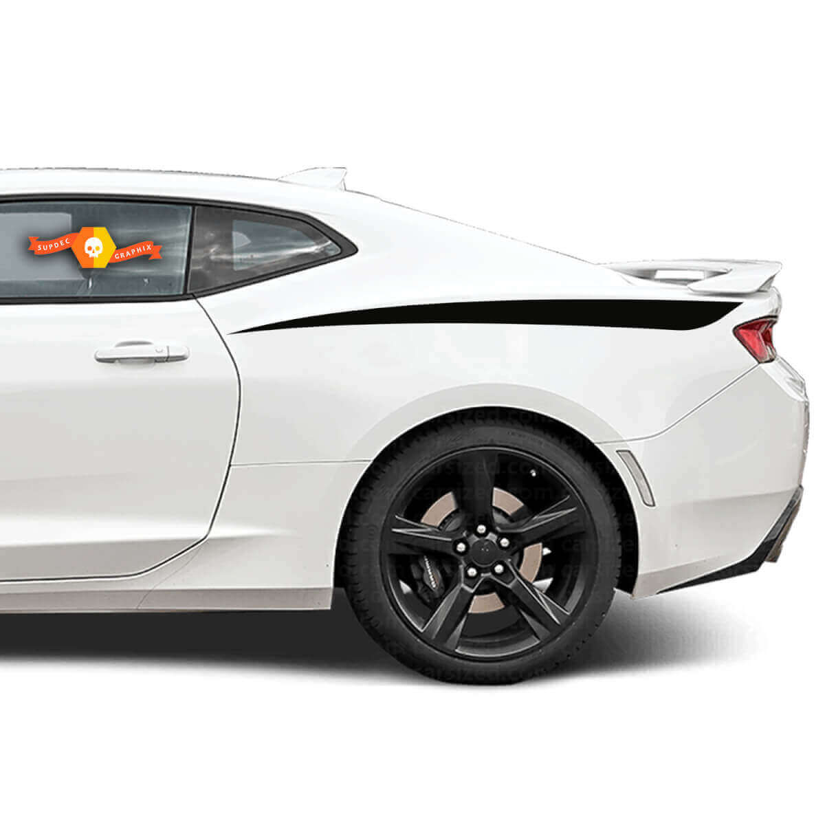 Ces bandes décoratives à l'arrière de la carrosserie donneront non seulement à votre Chevrolet Camaro une apparence spectaculaire, mais souligneront également sa personnalité et son style. Les bandes graphiques sont fabriquées en vinyle de haute qualité, ce qui garantit leur durabilité et leur résistance aux influences extérieures sur la voiture. L'installation d'autocollants sur la carrosserie Chevrolet est très simple et ne nécessite aucun outil spécial : il suffit de nettoyer la surface, de coller les bandes de vinyle et de les lisser doucement. La possibilité de choisir parmi une variété de couleurs et de textures vous permet d'adapter le design à vos préférences et de créer un accent unique qui mettra en valeur votre Camaro sur la route. Ces bandes graphiques pour les côtés des ailes de la Chevrolet Camaro seront un excellent moyen de souligner le caractère sportif de votre voiture et d'y ajouter une touche lumineuse et personnalisée.