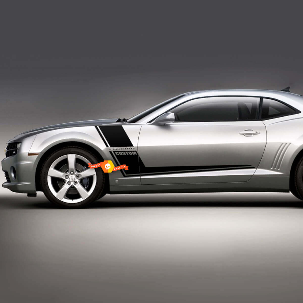 De plus, vous pouvez choisir le type d’autocollants en vinyle pour le Camaro : mat ou brillant, et aussi spécifier le texte que vous souhaitez voir sur l’autocollant dans la colonne « Texte personnalisé ». N’oubliez pas de préciser l’année de production de votre Chevrolet Camaro afin que les autocollants soient parfaitement adaptés à la taille de votre modèle.